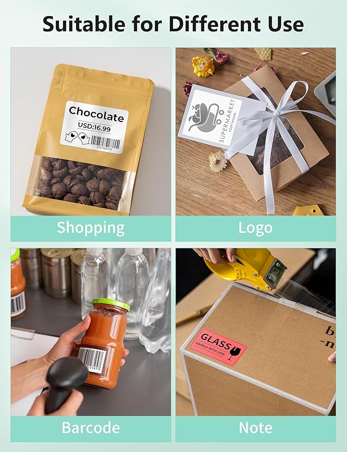 - [Multi-Platform Compatibility] - This shipping label printer supports label widths from 1 to 4.6 inches, making it ideal for printing labels from major platforms like eBay, Shopify, Amazon, Etsy, UPS, USPS, FedEx, and more. Easily print text, barcodes, QR codes, forms, and use pre-made templates for home or business. Note: The printer supports black-and-white printing only. For color labels, purchase compatible thermal color label paper separately.
