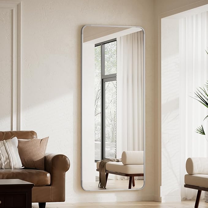 BEAUTYPEAK Silver Full Length Mirror, 65"x24" Rounded Corner Floor Mirror Standing Hanging or Leaning Against Wall, Suitable for Bedroom or Dressing Room