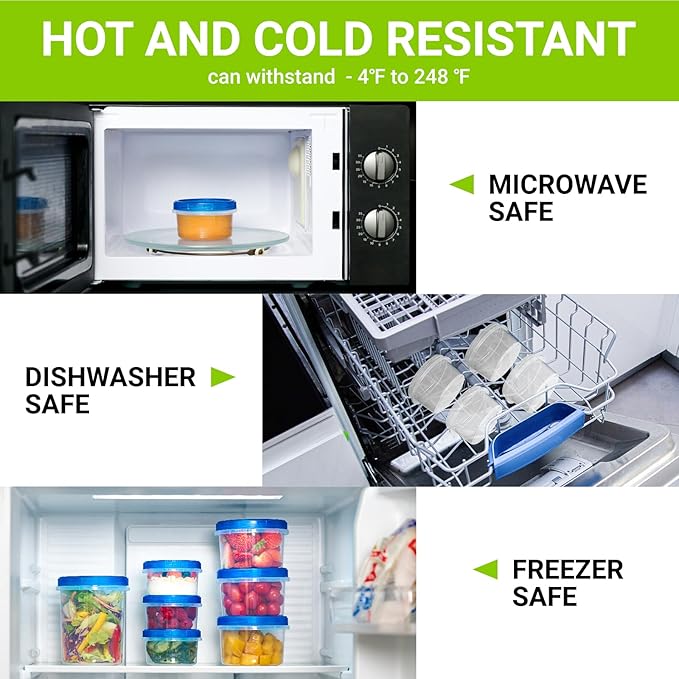 - Premium Material: These meal prep containers are made of food grade PP plastic, crystal clear, sturdy and stackable, can withstand -4℉ to 248 ℉, safe for microwave, freezer and dishwasher. NOTE: Please remove the lid before heating in the microwave