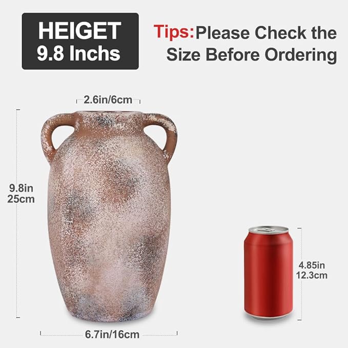 - Charming Rustic Farmhouse Design: This Rustic Vase with 2 Handles brings a timeless charm to your home with its distressed terracotta vase finish and vintage farmhouse vase aesthetic. Its rustic farmhouse home decor appeal makes it a perfect fit for modern rustic home decor, vases home decor, and rustic table home decor