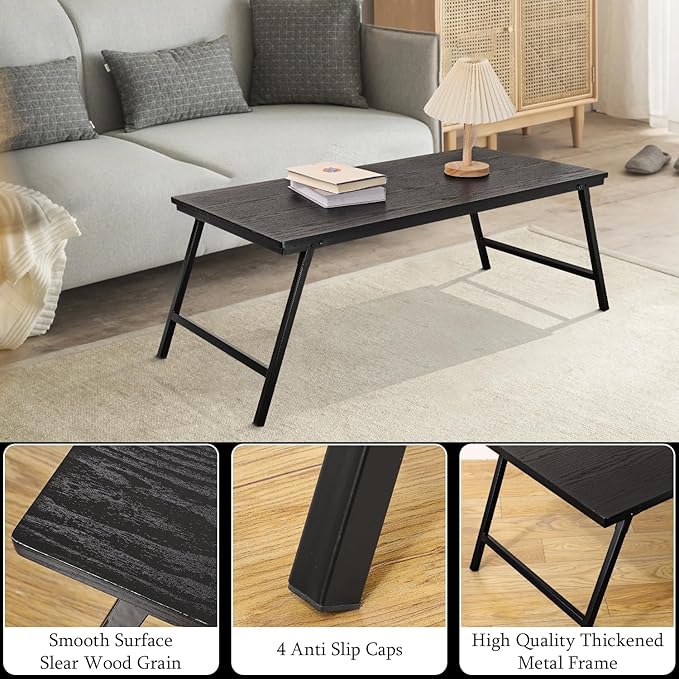 - No-Assembly Coffee Table with Metal Legs: Features reinforced metal legs for stability and a sleek wooden rectangular surface for easy cleaning. The foldable, space-saving design maintains a modern rustic aesthetic while supporting daily use.
