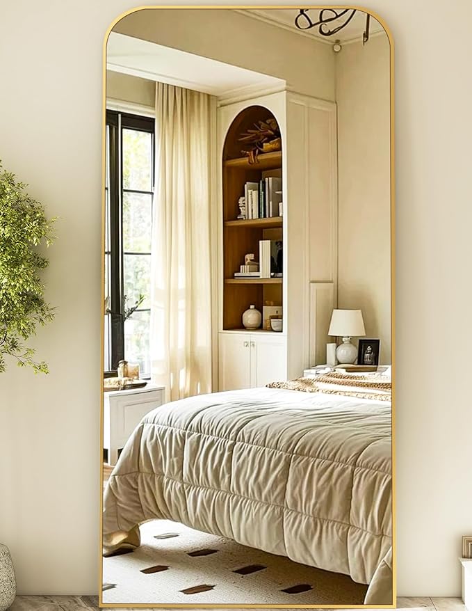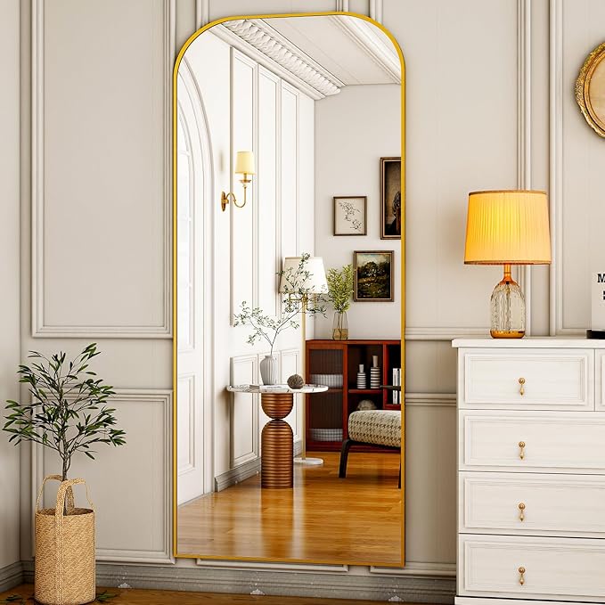 - NEW ARCHED Design - Our floor mirrors features a unique top rounded corner design, which is particularly eye-catching and highlights the beauty of the mirror surface.This wall mirror and full length free standing mirror will bring you a chic aesthetic