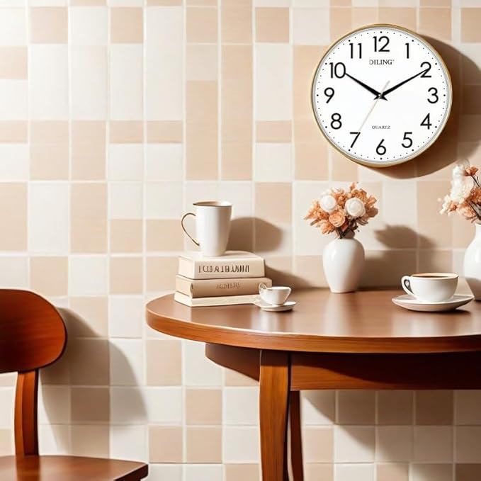 - Wall Decor: 13.78 inch round makes our clock a suitable size for home or office use. The simple classic design makes it a suitable decor for home and office, such as living room, kitchen, study and dining room.