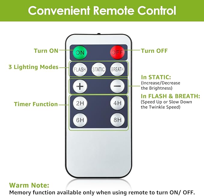 - Easy to operate solar string lights for outdoor: Simply install the lights and position the solar panel where it can receive sunlight. The string lights will automatically illuminate at night and turn off during the day, or you can set the operation time with a remote, eliminating the hassle of manually switching the lights on and off