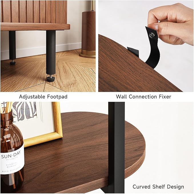 - Mid-Century Modern Bookshelf: ONBRILL 4-layer bookshelf with a storage cabinet, the unique curved shelf design makes you shine. You can use this bookshelf to place books, crafts, photo albums, potted plants, etc.