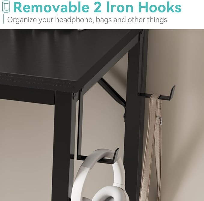 - Efficient Storage Design: Little Desk with 1 removable storage bag and 2 iron hooks to keep your workspace tidy. Perfect for organizing books, headphones, supplies, and tech accessories