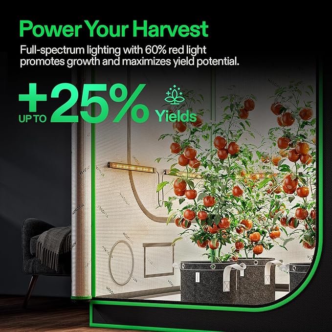 - Red-Enhanced Full-Spectrum: These lights emit a sun-like full-spectrum light with 60% red light (600-700 nm); This optimized formula stimulates photosynthesis and supports flowering and fruiting effectively