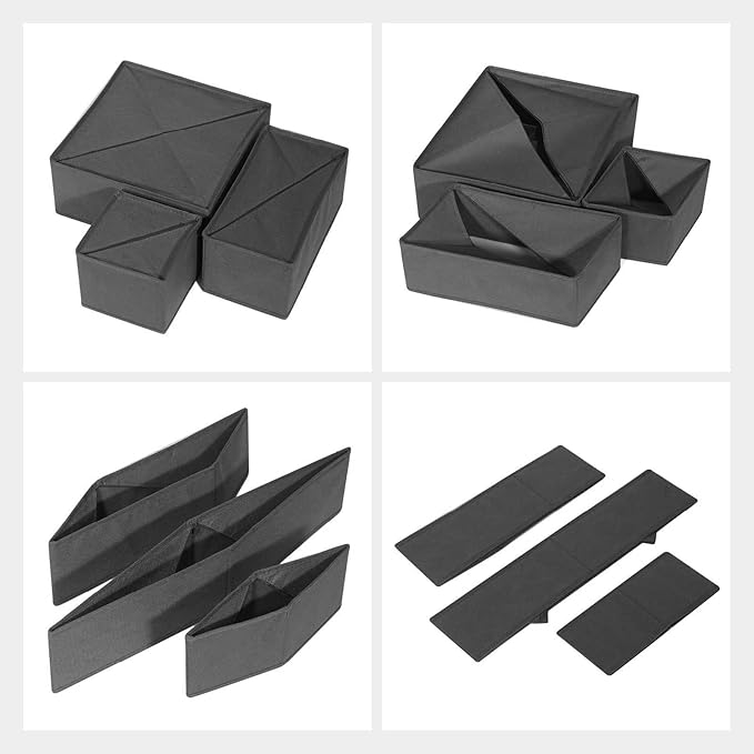 - 【QUALITY MATERIAL】This fabric dresser drawer divider organizer is made with non-woven fabric,which is soft,breathable,easy clean,durable and not easy to bend,deform and tear.These foldable clothes organizer are stackable to take advantage of the space.