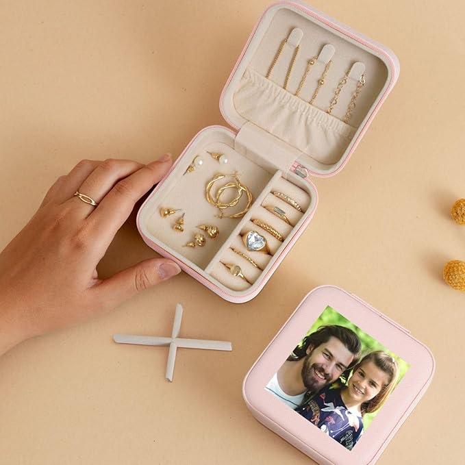- PERSONALIZED GIFTS FOR WOMEN: Keep their jewelry sorted and worry-free from potential loss during travels; adding a personalized name and pictures in this small jewelry organizer transforms it into a perfect memorable gift for Mother's Day, Valentine's Day, or Christmas.