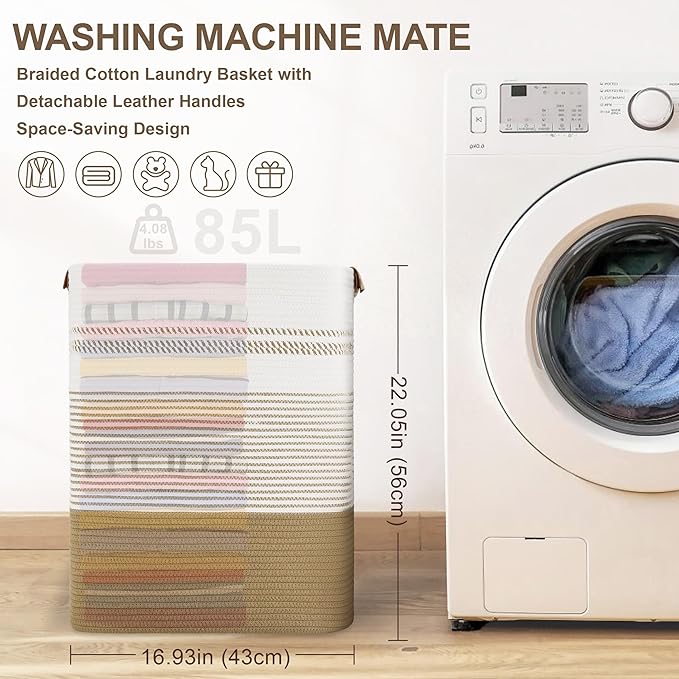 - HOUSEHOLD STORAGE SOLUTION: 85L oversized basket. The extra large basket can hold the entire family's daily laundry and can be used as a toy storage basket, a baby laundry basket, a nursery laundry basket, a blanket/throw storage for living room or a towel basket for bathroom