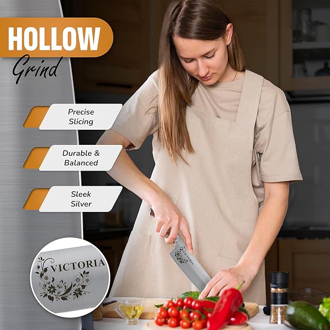 - Customizable with Personalization in Two Color Options – Add a personal touch to this already impressive knife with optional engraving. You can customize the blade with a name, initials, or special message in your choice of two distinct colors. This makes the knife not only practical but also meaningful—perfect as a personalized gift or to showcase your own signature style in the kitchen.