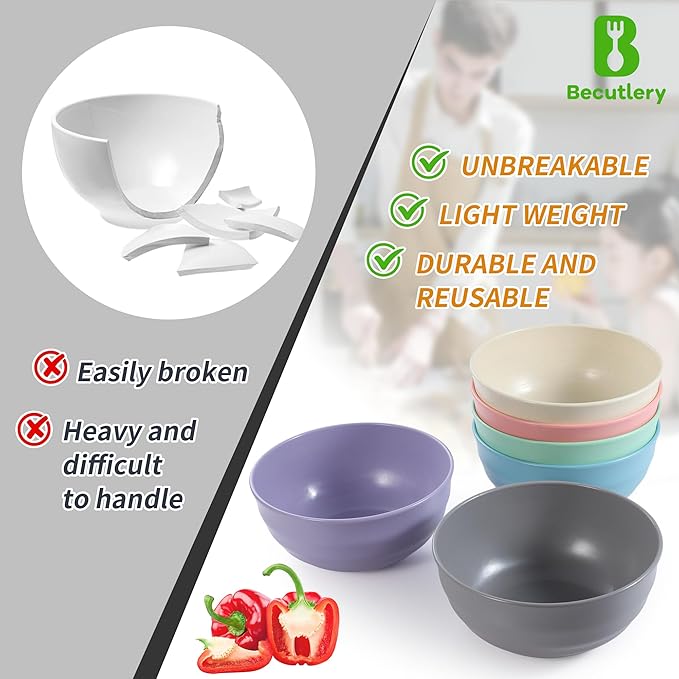 - 【Durable, Lightweight, and Safe】Made of sturdy yet lightweight wheat straw, these bowls are unbreakable. Perfect for families with kids and seniors, with smooth edges for added safety. Easy to handle and carry, suitable for various occasions and lifestyles.
