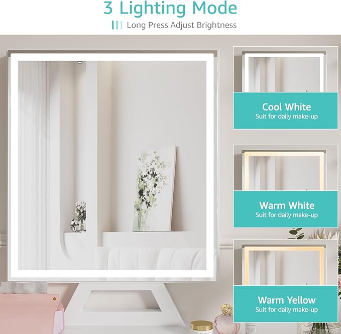 - Enhanced Lighting: LED mirror offers natural, warm, and cold light options; adjust brightness by long-pressing the screen for perfect makeup in any scene, ensuring flawless result every time