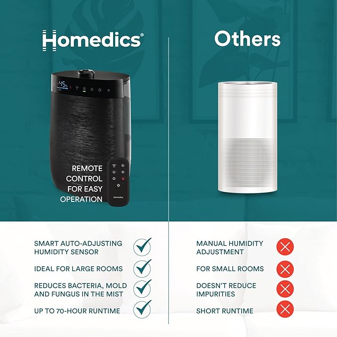 Homedics Deluxe Ultrasonic Humidifier for Large Rooms, Warm or Cool Mist, UV-C Technology, 1.5-Gallon Top Fill Tank, Smart Digital Programmable Humidistat, Home Dry Air Relief, Aromatherapy