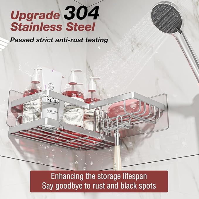 - Passed Strict Anti-Rust Testing: The shower caddy is crafted with advanced techniques, coated with an anti-rust finish, and has passed rust-resistance tests. It is thicker and more durable than standard caddies, offering long-lasting rust resistance and a lasting sheen, making it particularly suitable for humid environments.