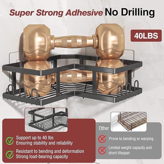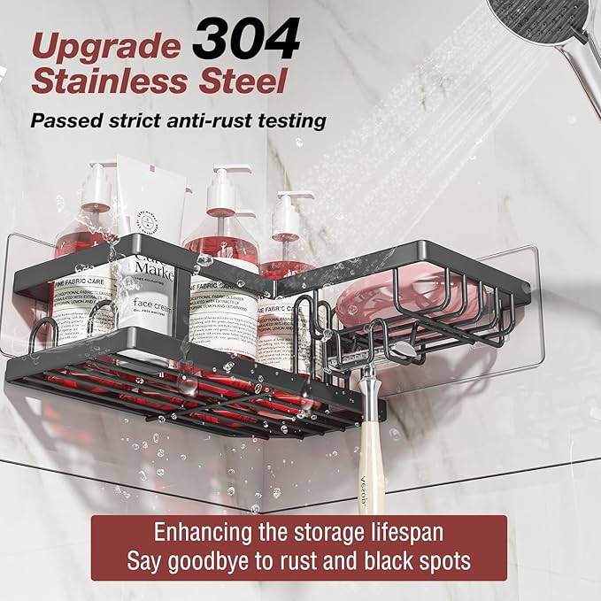 - Passed Strict Anti-Rust Testing: The corner shower caddy frame is crafted with advanced techniques, coated with an anti-rust finish, and has passed rust-resistance tests, making it particularly suitable for humid environments. Built to last, Say goodbye to rust and black spots