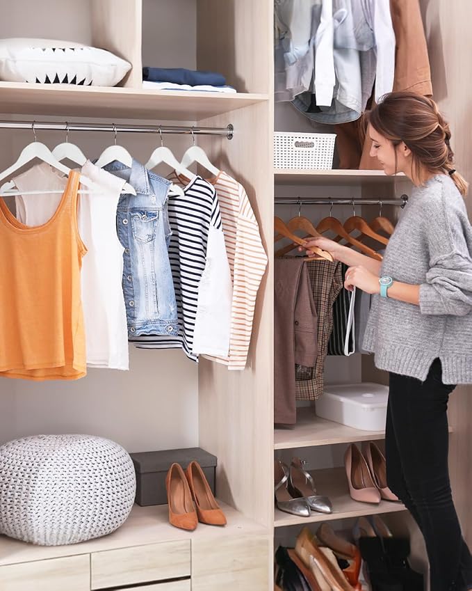 AMKUFO Wooden Hangers 20 Pack Wood Suit Hangers Non Slip Wooden Coat Hangers with Smooth Fnish Cut Notches 360° Swivel Hook Clothes Hangers for Jeans Pants Jackets Shirts Dresses, White