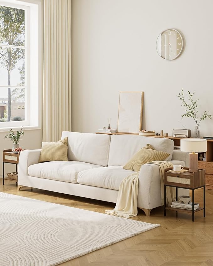 - Small side table for small spaces:This night stand is small but spacious nightstand features 1 drawer and bottom shelving, providing a perfect storage space for your remote controls, glasses, medications and other necessities on hand.