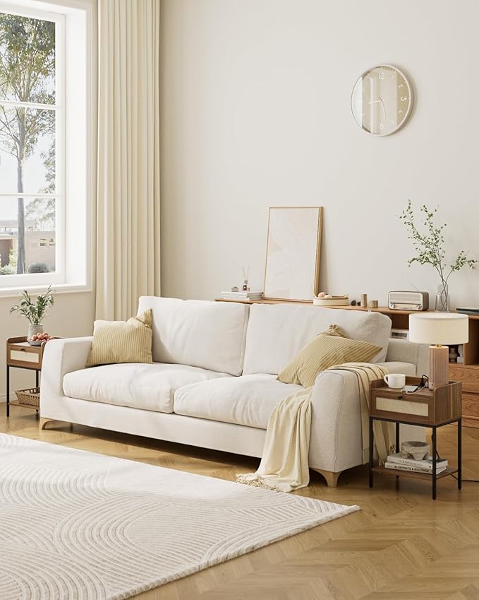 - Small side table for small spaces:This night stand is small but spacious nightstand features 1 drawer and bottom shelving, providing a perfect storage space for your remote controls, glasses, medications and other necessities on hand.