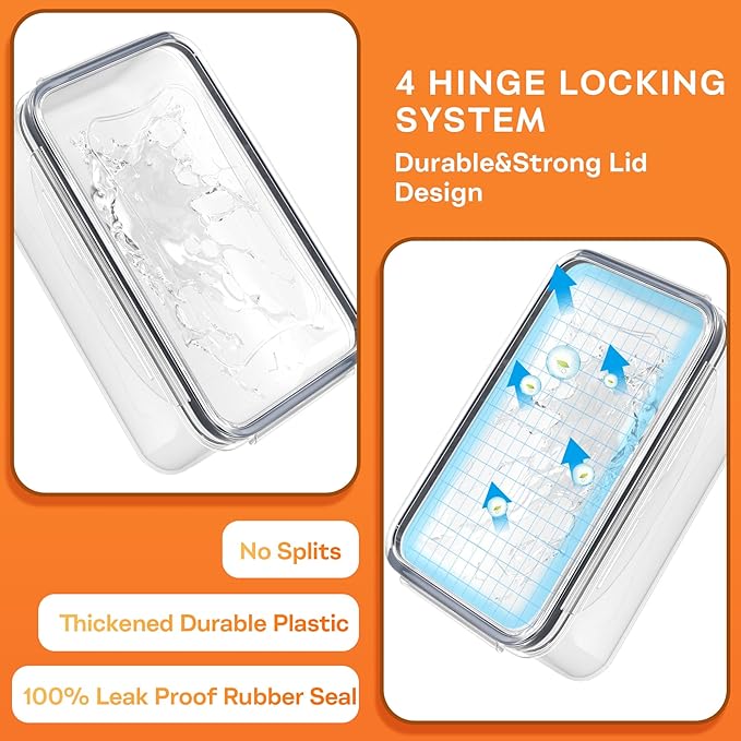 - Upgraded - 100% Leak Proof and Airtight: Storage containers come with removable silicone rings and 4 hinge locking systems that easily be closed by adding little pressure than old version. The use of food containers set can keep your food fresh and tidy by preventing food spillage and leakage of food smell