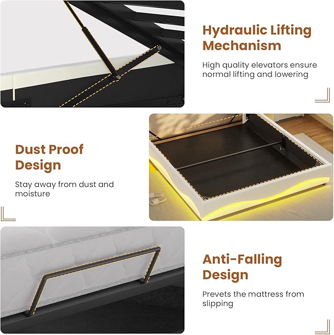 - 【Lifting Easily】-With hydraulic technology, lifting and landing the platform is smooth and easy to make up the bed, allowing easy access to items stored under the bed frame. Cushioned pneumatic lever controls the landing speed, making it easy and safe for the elderly and children to maneuver.