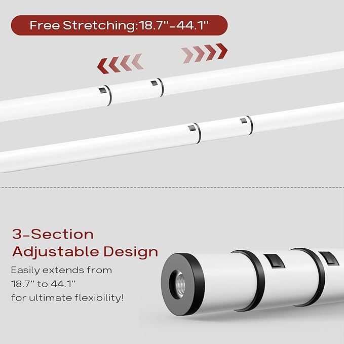 - 【Durable and Sturdy Structure】Each tier holds over 20 lbs, and the 0.87-inch (2.2 cm) extra-thick metal tubes ensure the rack remains stable and doesn’t sag, even when fully extended to 44 inches (112 cm).