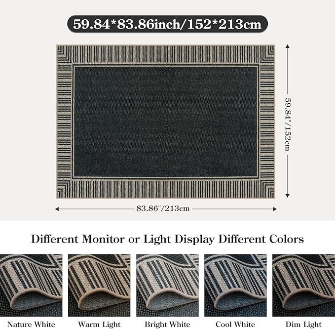- Non-Slip Black Outdoor Rug: Powerful anti-slip TPE backing to prevent slippage and helps keep the living room carpet firmly in place. Whether used as a dining room rug or outdoor patio rug, it provides both safety and style for your home