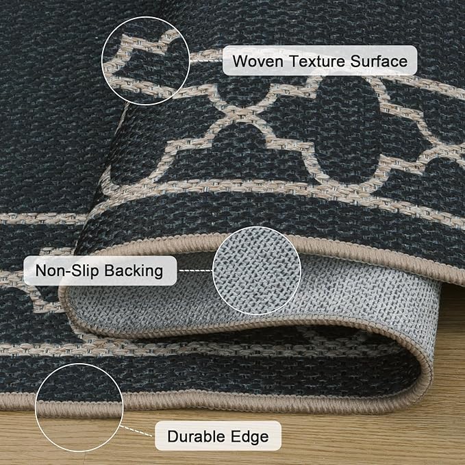 - Non-Slip Black Outdoor Rug: Powerful anti-slip TPE backing to prevent slippage and helps keep the living room carpet firmly in place. Whether used as a dining room rug or outdoor patio rug, it provides both safety and style for your home