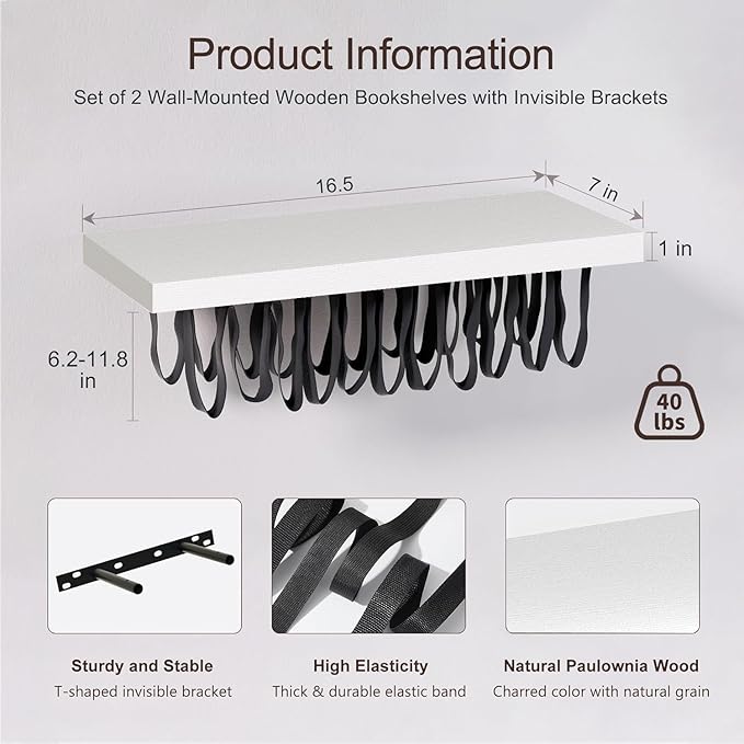 - Elevate Your Interior: Crafted from thick, high-quality Paulownia Wood, these floating bookshelves are lightweight yet sturdy. Paired with solid metal T-shaped wall brackets, they are easy to install