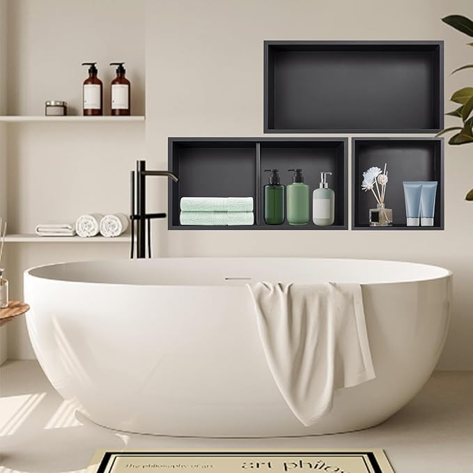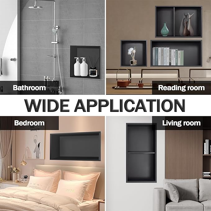 - Wide Usage: Niches not just for bathroom, also can be used for cupboards, bookshelves, kitchen, etc. It does not take up the building area, more convenient to use. The niche is a clear spot in the interior wall design, substitute for clunky bathroom shelves, as well as, other shelves and fixtures around your home. It can be used to improve the beautifying environment regardless of family or public environment