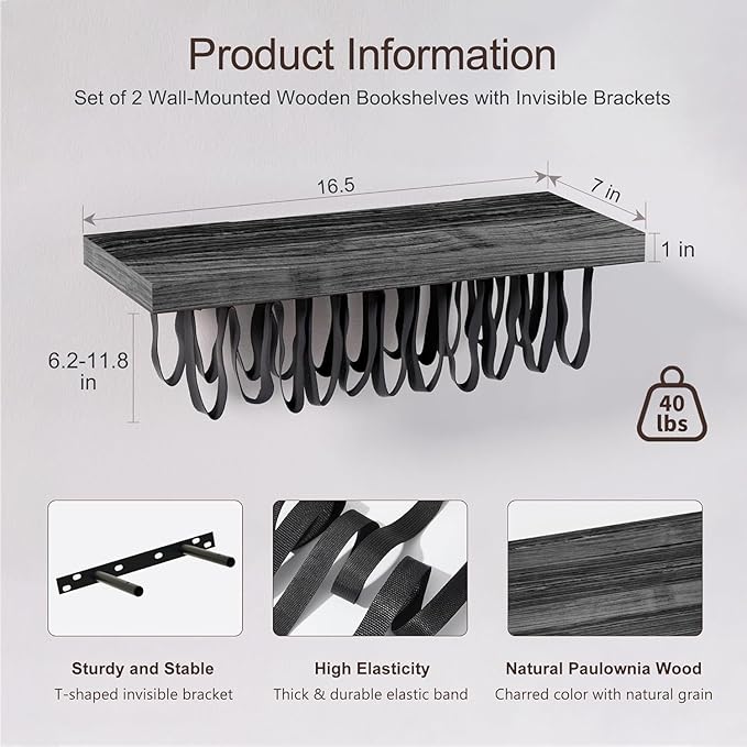 - Elevate Your Interior: Crafted from thick, high-quality Paulownia Wood, these floating bookshelves are lightweight yet sturdy. Paired with solid metal T-shaped wall brackets, they are easy to install