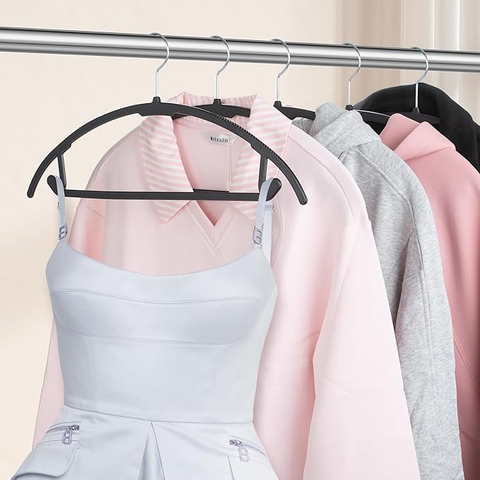 - Curved and Non-Slip Design: The curved shape protects clothes from shoulder bumps, while the non-slip surface securely holds items, ideal for shirts, dresses, and delicate fabrics.