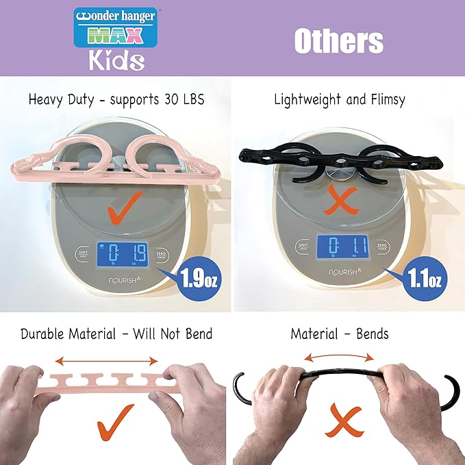 - HEAVY-DUTY DESIGN: Built from heavy-duty, reinforced plastic, the Wonder Hangers are made to last and durable enough to hang heavy jackets, tablecloths, and throw blankets. Crafted from durable materials, it can hold up to 30 lbs per hanger. It's strong enough to hold your bulkiest winter wear yet versatile enough to hang your entire wardrobe with ease. The Wonder Hanger Max is designed to hold a tremendous amount of weight and is arranged vertically to maximize closet space.