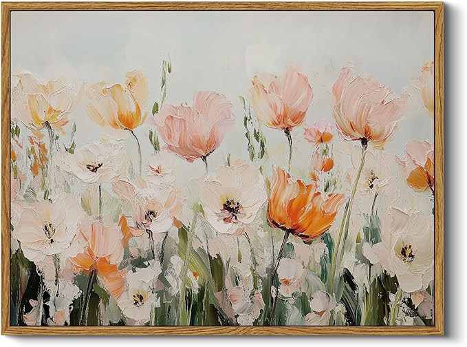 - VIBRANT FLORAL DECOR: Featuring blooming flowers with bold colors and palette knife texture, this framed canvas wall art captures the essence of nature’s vitality. The colour scheme and overall atmosphere of the painting is suitable for decorating the living room, bedroom or dining room, infusing the space with natural freshness and warmth, and at the same time enhancing the artistic tone of the interior.