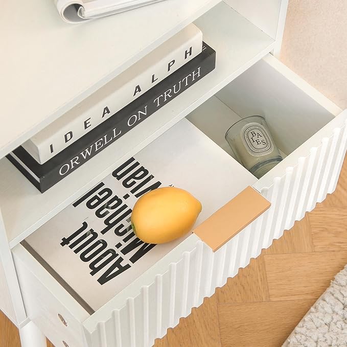 - Fluted Nightstand: This fluted nightstand boasts a classic white finish and a fluted drawer design, creating a simple and modern ambiance. The combination of walnut surface and golden metal handle introduces modern fashion to this nightstand, adding a contemporary touch to your home decor