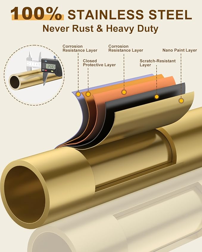 - 100% STAINLESS STEEL STRENGTH - ENJOY 760 LBS & RUST-DEFYING! Boasting an industry-leading 760 lbs weight capacity, 50% stronger than others, our NEWEST clothes rack confidently handles your heaviest garments. It features 100% stainless steel design, with even the smallest screws made of the same high-quality material. We've implemented a cutting-edge five-layer coating process, including an extra protective sealant layer, ensuring your rack remains rust-free and resistant to wear and tear.