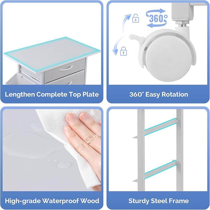 - 【Effortless Mobility】Rolling on 4 wheels, this mobile file cabinet can fix or move around your home office freely. Built-in brakes on front 2 casters to keep it in position and add stability. The unique fabric drawer design makes it light to move.