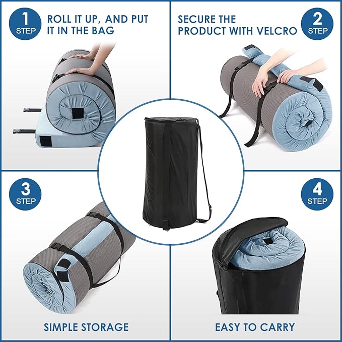 - 【Versatile & Portable】: Includes a sturdy carry bag with straps for easy rolling and storage. Ideal for hiking, tent camping, road trips(for SUV/RV/Van/Truck/Camper) as a temporary mattress, offering greater comfort than inflatable options. Also suitable as a guest bed for sleepover, floor mat, cot mattress or tatami mattress.