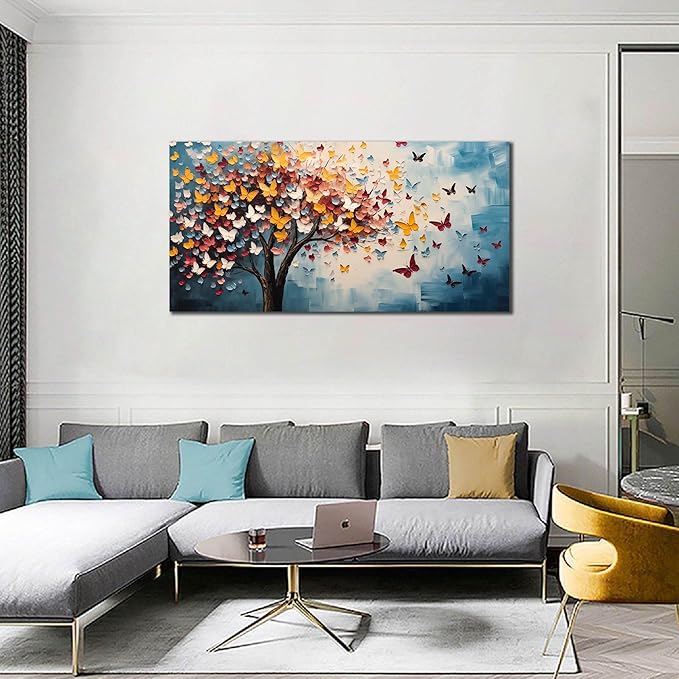 Butterfly Tree Canvas Wall Art for Living Room Bedroom Home Office Blue Colorful Tree of Life Wall Art Modern Large Framed Canvas Prints Size 24x48