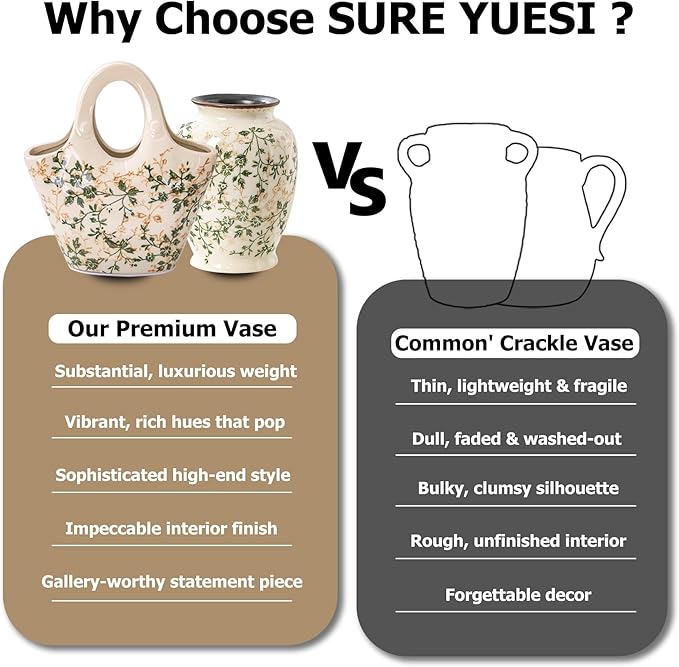 - Elegant Vintage Design: The SURE YUESI vintage vase is a handcrafted green and beige vase with a timeless round silhouette. Its beautiful design adds a touch of chinoiserie decor and vintage home decor charm, making it an eye-catching accent for any room.