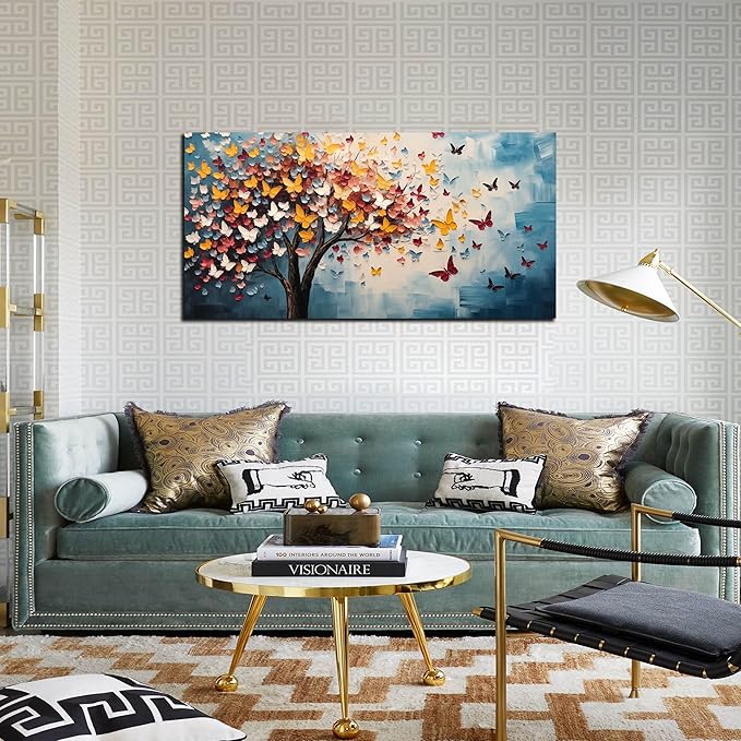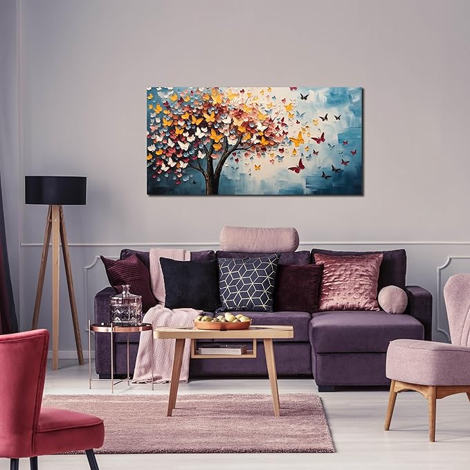 Butterfly Tree Canvas Wall Art for Living Room Bedroom Home Office Blue Colorful Tree of Life Wall Art Modern Large Framed Canvas Prints Size 20x40