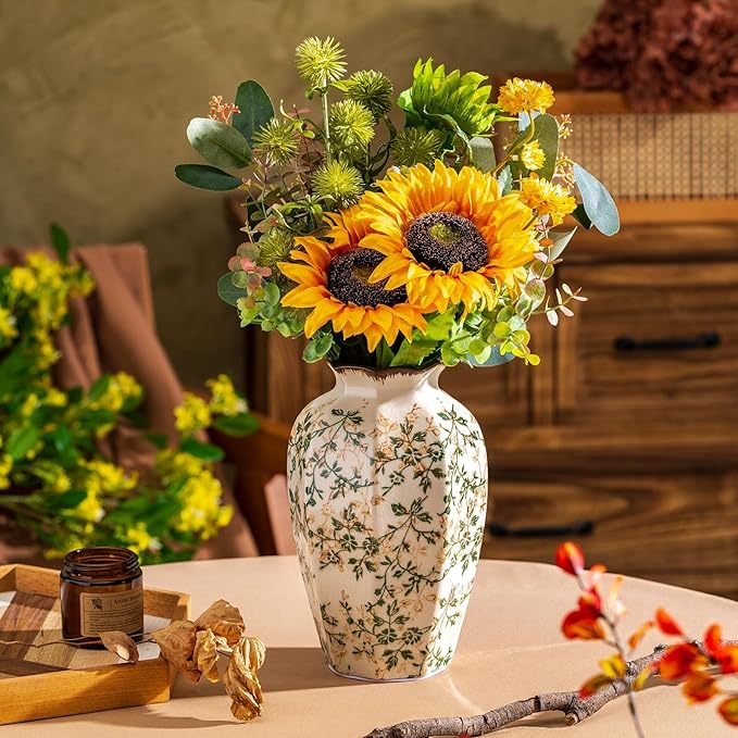 - VERSATILE STYLING: This floral vase is ideal for fresh or faux flowers, branches, or greenery. Whether placed in the living room, bedroom, dining room, kitchen, or bathroom, it enhances any space with its timeless appeal. Perfect as a centerpiece for Tuscan decor or a decorative accent for ceramic vases for home decor.