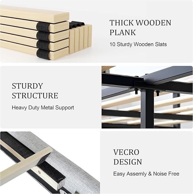 - Solid & Stable Build - The combination of a robust steel frame and reinforced wooden slats creates an ultra-stable full size bed platform. Works perfectly with 6-12 inch mattresses - no box spring necessary