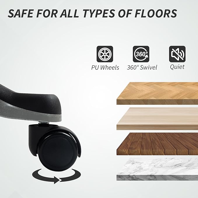 - Smooth Mobility: The computer chair includes a swivel seat and PU wheels, which are quiet and suitable for various floor types, ensuring effortless movement around your workspace