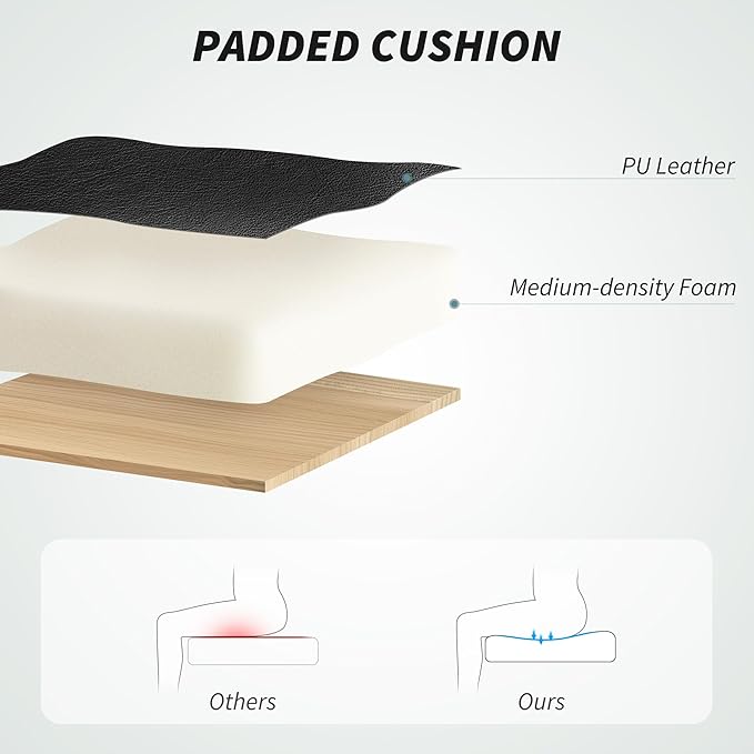 - Padded Upholstery: High back, padded arms, and thick foam padding make this rolling chair comfortable and supportive. Easy-to-clean PU leather adds a sleek style to any home office