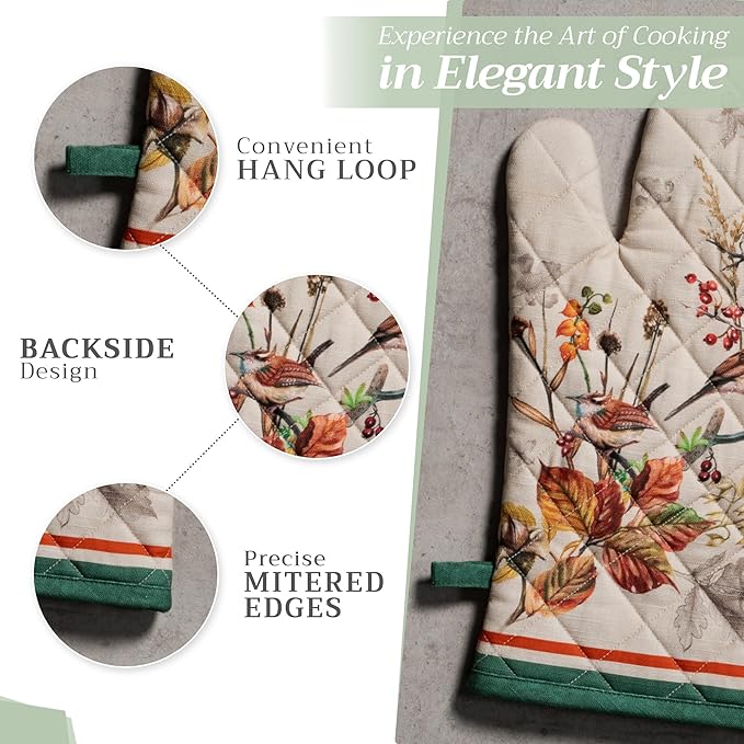 - Unique Design: Inspired by Europe, featuring exquisite watercolor artwork where each design embodies over 120 hours of hand-painted artistry. The rich hues and fine detailing make this Oven Mitt perfect for holiday tables, fall decor, Thanksgiving decorations, or festive Christmas decorations