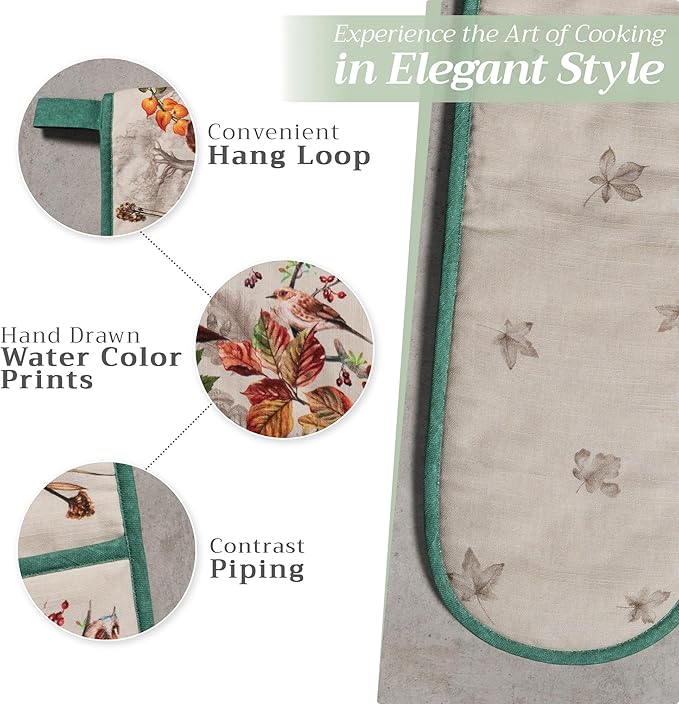 - Unique Design: Inspired by Europe, featuring exquisite watercolor artwork where each design embodies over 120 hours of hand-painted artistry. The rich hues and fine detailing make this Double Oven Mitt perfect for holiday tables, fall decor, Thanksgiving decorations, or festive Christmas decorations