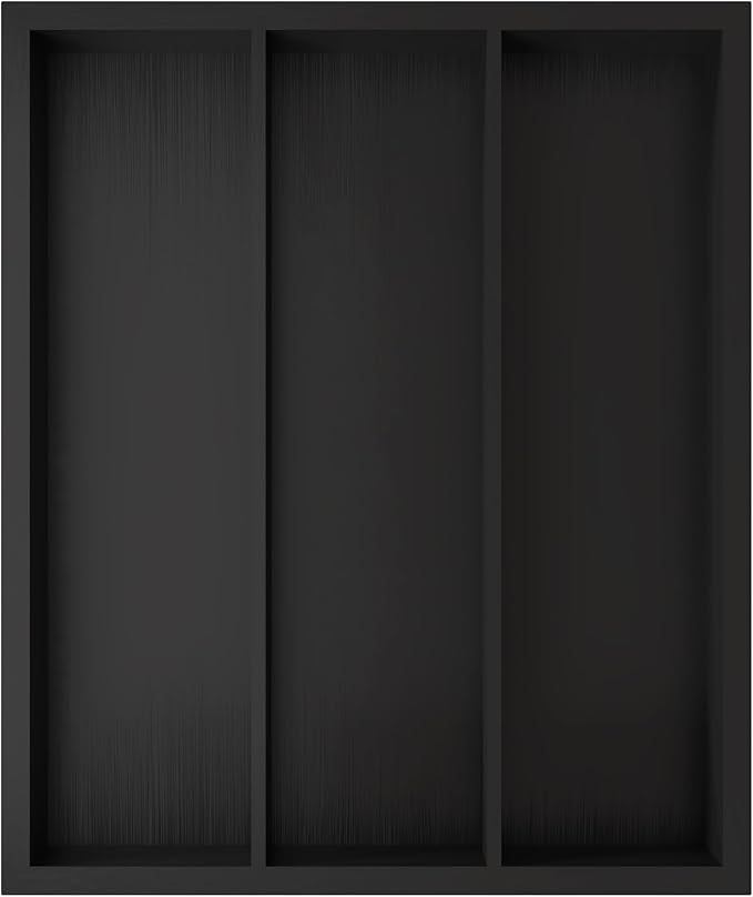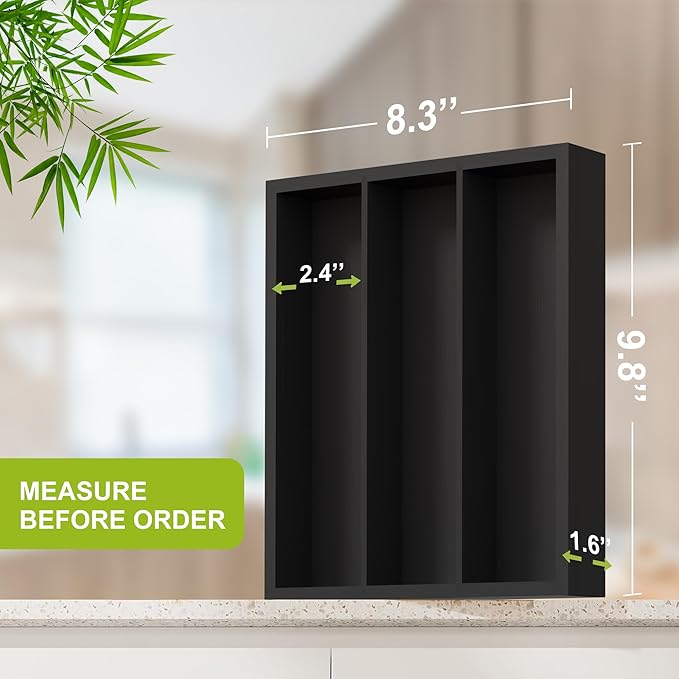 Bamboo Utensil Drawer Organizer, Silverware Tray Organizer, Kitchen Drawer Organizer for Flatware Cutlery (Black, 3 Slots)