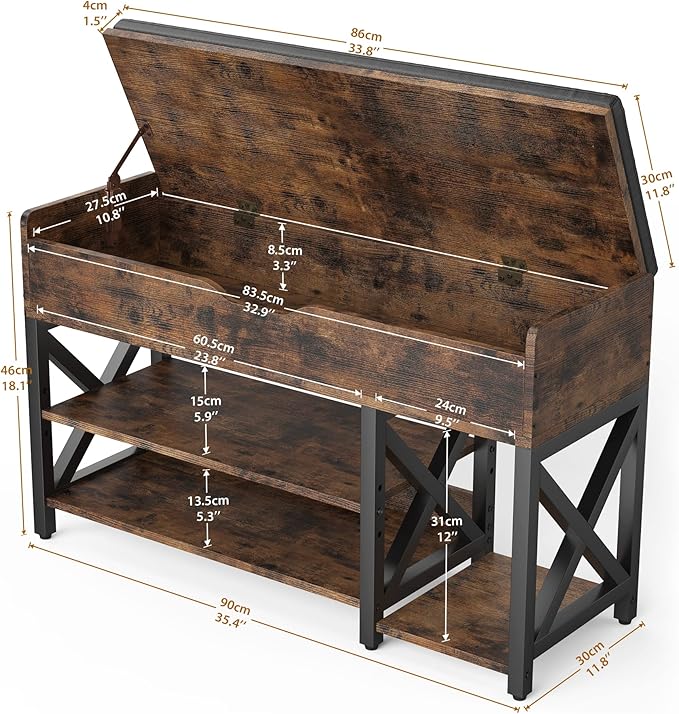 - 【Lift Top Hidden Storage】Shoe storage bench with a lift top storage design provides space for storing small items and protects your entryways from disorder The safe and strong hinges can keeping this storage up so that you don`t have to hold it with your hand ; gently open the cushion can be fixed, sturdy support points to avoid pinching hand.