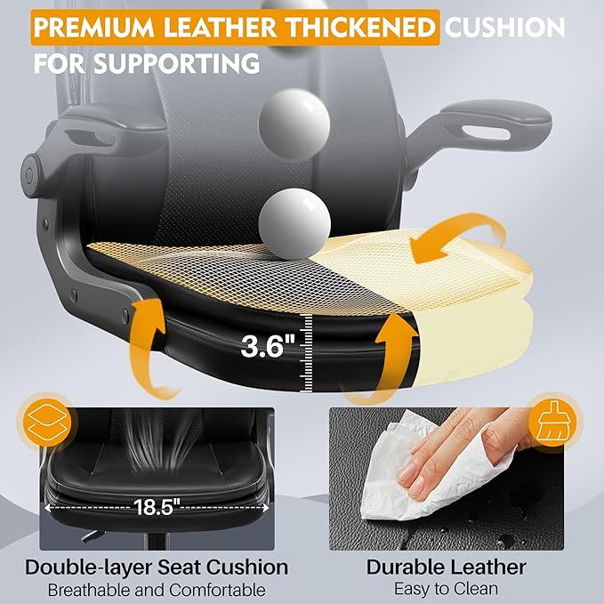 - 【PREMIUM WATERPROOF & SCRATCH-RESISTANT LEATHER】 –This ergonomic office chair made with premium leather that is resistant to water, oil, and pet scratches, ensuring durability and easy maintenance, suitable for daily high-frequency use